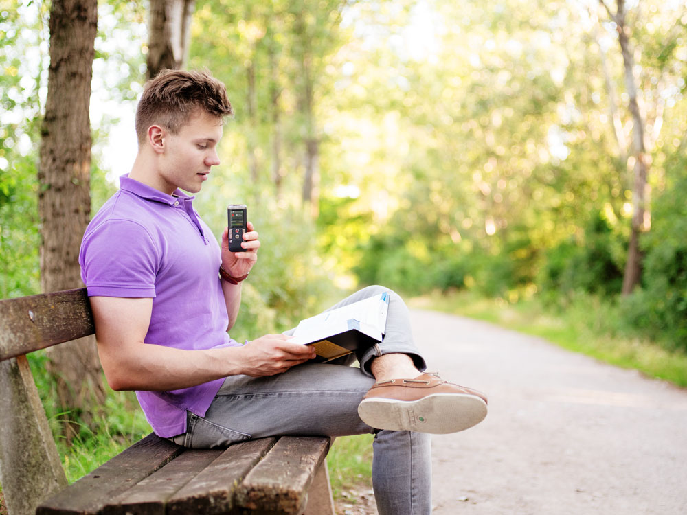 Digital Voice Tracer 2510 doskonale nadaje się do nagrywania notatek głosowych, pomysłów i przemyśleń w podróży. Funkcja nagrywania stereofonicznego 2Mic pozwala na zapis w najwyższej jakości stereo. Duży kolorowy wyświetlacz ułatwia szybkie nagrywanie.